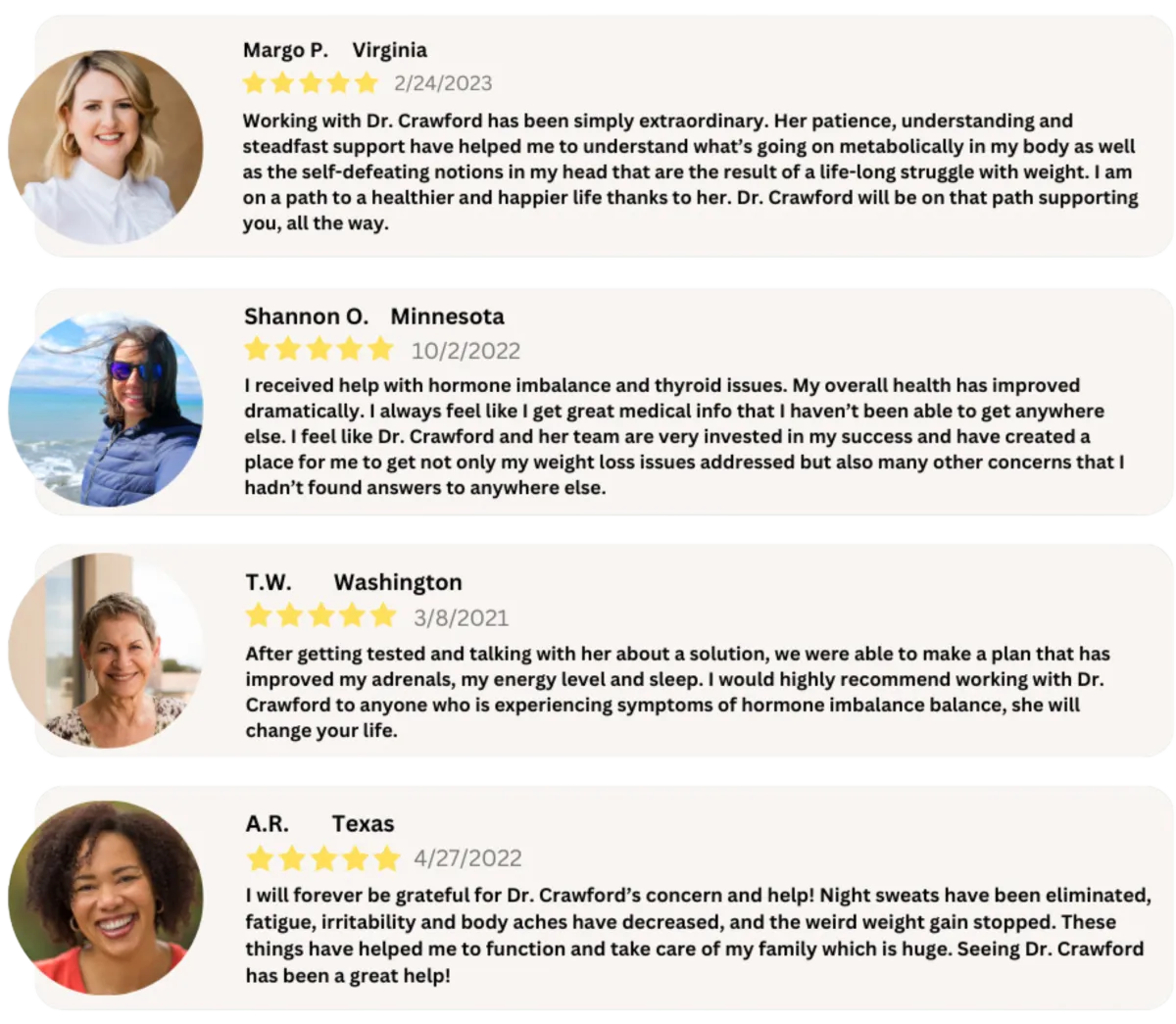 Dr. Crawford’s expertise and commitment make her the ideal partner on your journey to renewed energy and success.