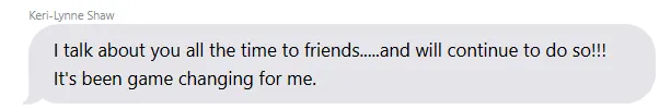 “ I have been very thankful and blessed to be on the path of feeling like myself again (and I have you & your team to thank for that). If my testimony can help even one person to find you and work with you to get back to themselves again, that'd be great! “