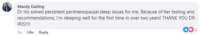" Celebrating getting to sleep faster, feeling more energy and stamina. Program helped me to balance my hormones and educated me on long-term health. It gave me a compass for how to navigate a sustainable plan so I could be independent. "